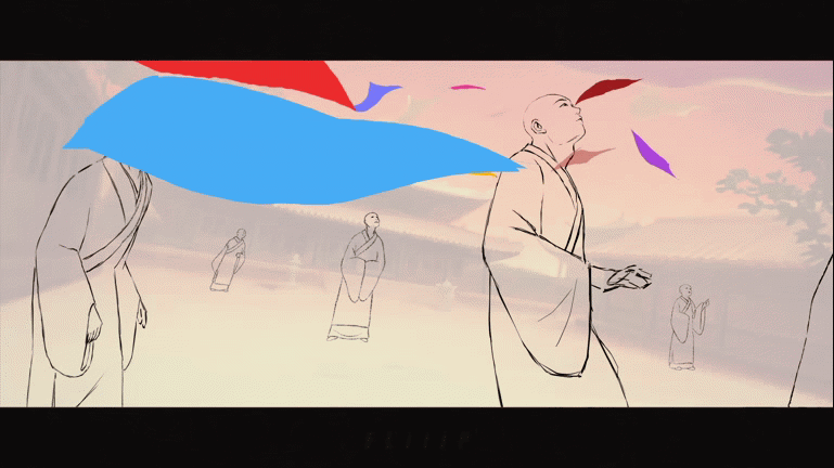 “In terms of stylistic exploration, FLiiiP has previously experimented with various forms of Chinese aesthetics, including ink painting, shadow puppetry, and the visual style of classic animations like Nine-Colored Deer from the Shanghai Animation Film Studio. This time, we wanted to venture into a new direction—one that blends Chinese aesthetics with a cinematic feel. After careful consideration, we decided to evoke the atmosphere of old film reels from the 1980s and 1990s, like Green Snake and A Chinese Ghost Story, aiming to recreate that distinct, nostalgic Chinese cinematic mood.