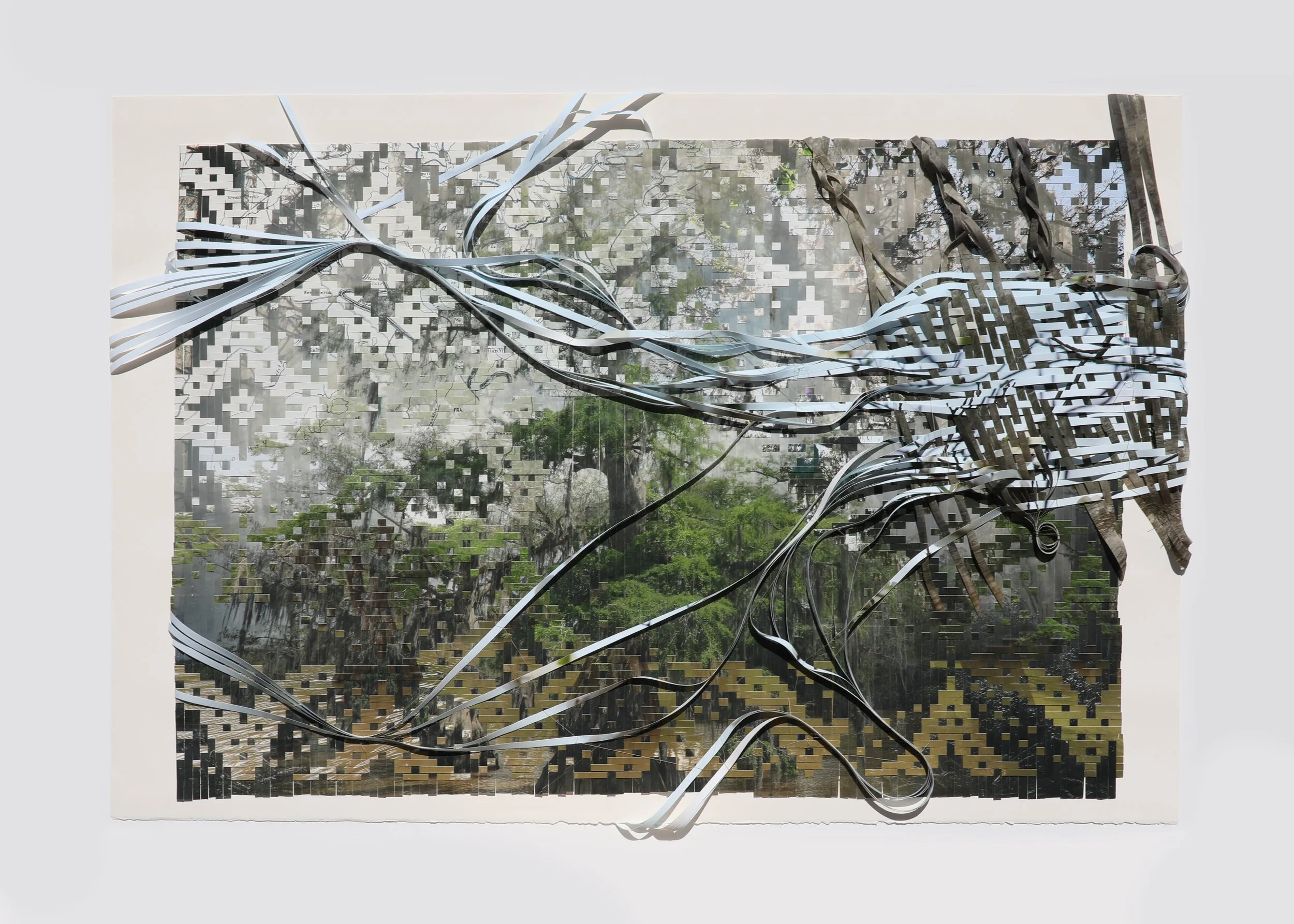 Sarah Sense (b. 1980, Sacramento, California) is an artist whose practice centers on photo-weaving using traditional basket techniques from her Chitimacha and Choctaw family. She received a BFA from California State University, Chico (2003) and an MFA from Parsons The New School for Design, New York (2005).
