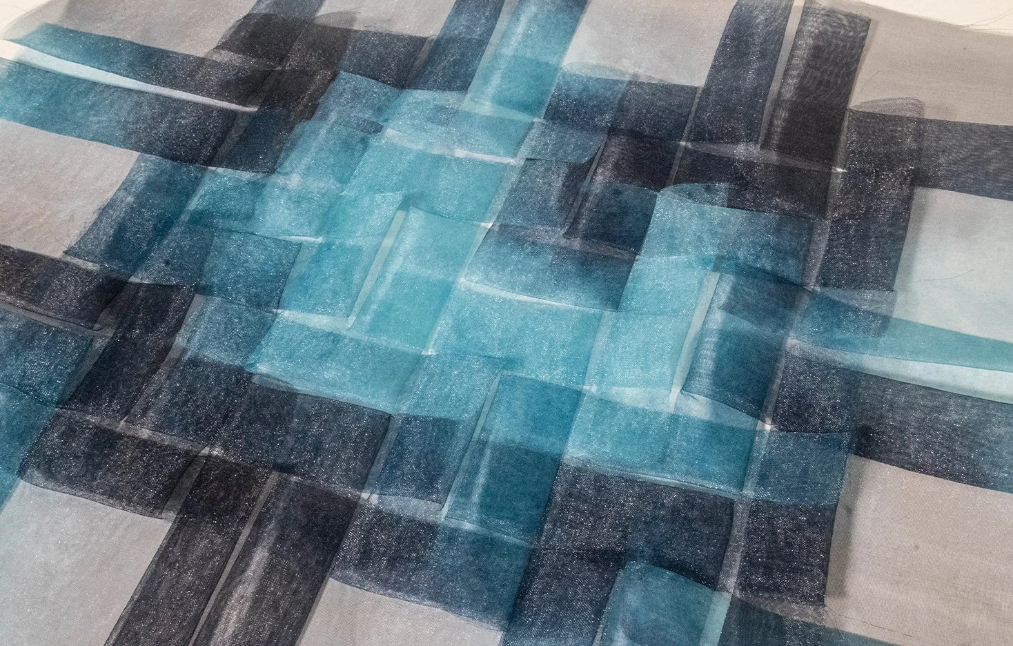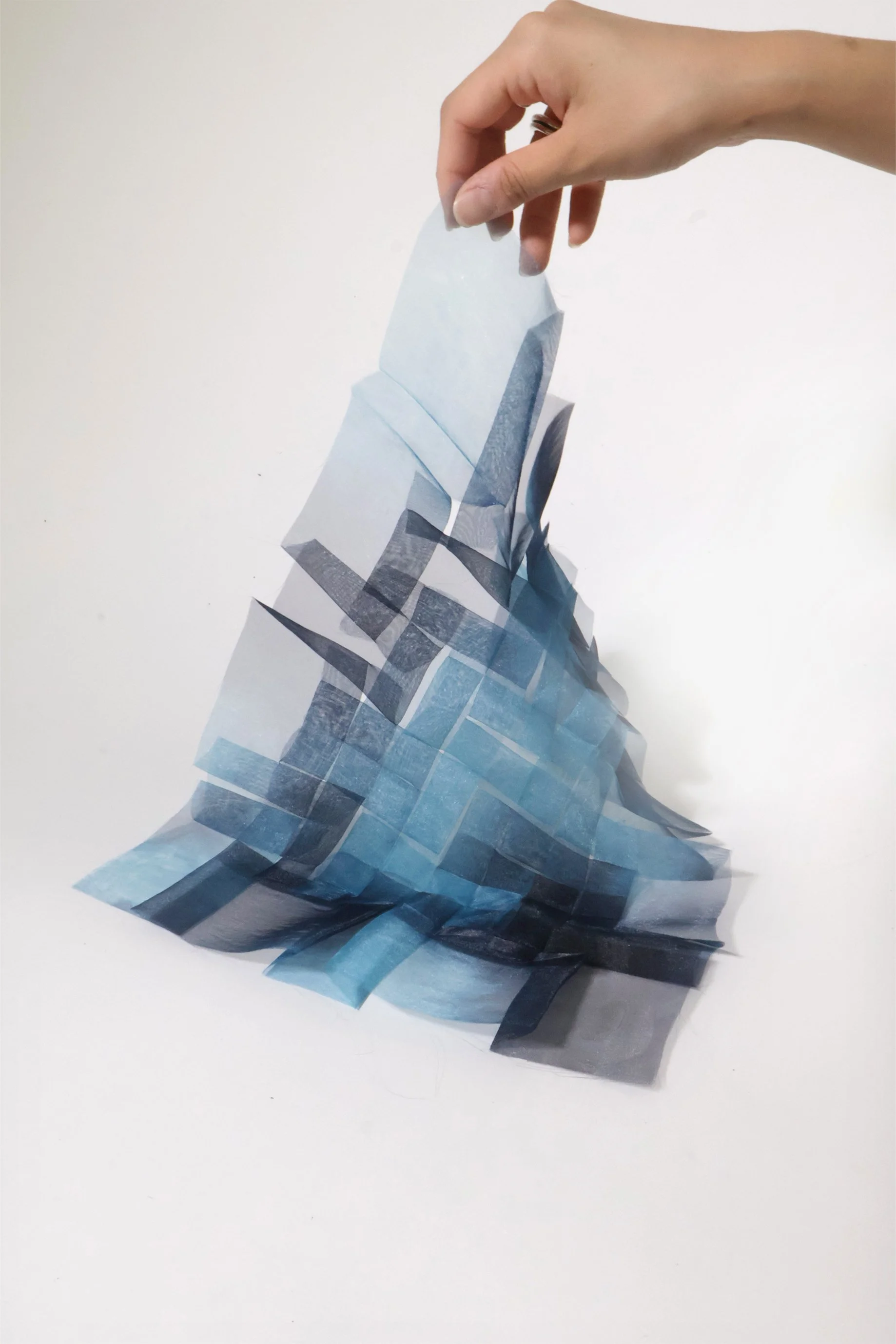 I chose to work with organza for its translucency, lightness, and capacity to capture light and shadow, qualities that echo those of Korean traditional philosophy and aesthetic.